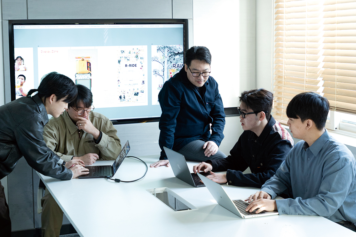 최종우 학과장이 꿈의 직장을 내려놓고 교수로 한국에 들어온 2023년은 인공지능에 대한 다양한 시도와 연구가 급물살을 타던 때다. 그 역시 학생들과 함께 진행한 AI 워크숍을 계기로 외부 디자인 에이전시를 비롯한 대기업들과 적극적으로 협업하면서 AI에 관심을 두게 됐다. 그는 앞으로 디자이너를 비롯한 전 직군에서 AI를 선택의 대상이 아닌 공존의 관점으로 바라보며, 디자이너들이 이러한 AI 활용을 더 이상 주저하지 않기를 권하고 더욱 적극적으로 활용해야 함을 강조한다.